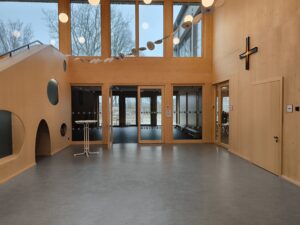 Nach unserem Eingangsbereich kommen Sie direkt in unser Foyer. Hier treffen wir uns regelmäßig für Singkreise, Feste, Konferenzen oder Gottesdienste.